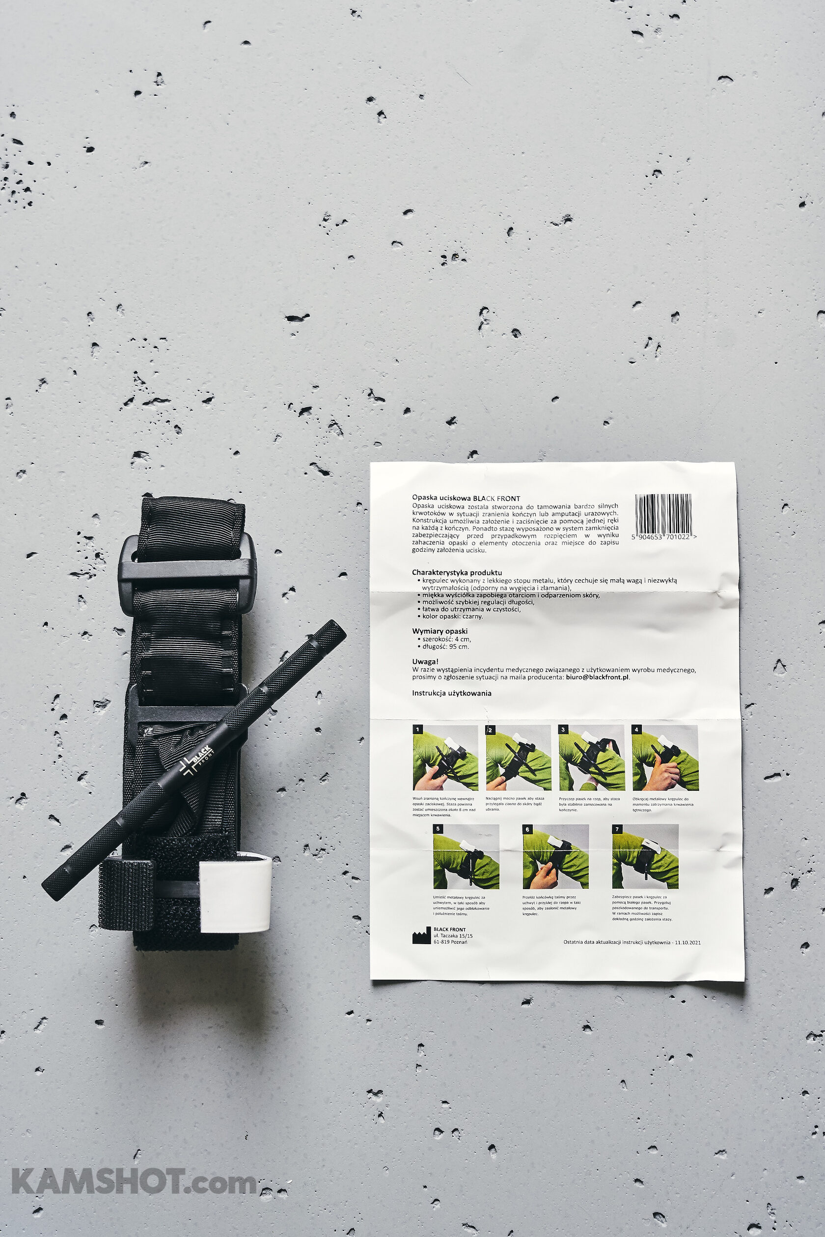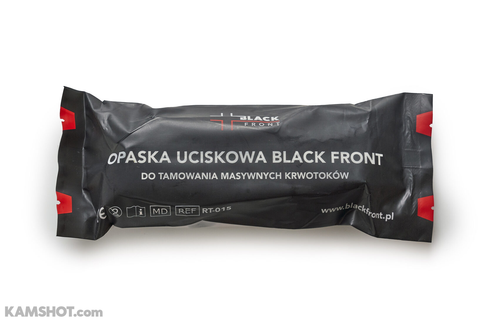 Opaska uciskowa (staza taktyczna) polskiego producenta Black Front z autoryzowanej dystrybucji. Produkt powszechnie stosowany podczas działań ratowniczych w Polsce oraz podczas działań związanych z ratownictwem taktycznym na Ukrainie. Opaska uciskowa (staza taktyczna) została stworzona do tamowania bardzo silnych krwotoków w sytuacji zranienia kończyn lub amputacji urazowych. Jej konstrukcja umożliwia założenie i zaciśnięcie opaski za pomocą jednej ręki na każdą z kończyn. Ponadto, stazę wyposażono w system zamknięcia zabezpieczający przed przypadkowym rozpięciem w wyniku zahaczenia opaski o elementy otoczenia oraz miejsce do zapisu godziny założenia ucisku. Dodatkowym atutem jest to, że opaska uciskowa została już poprawnie sklarowana na etapie produkcji, tak wiec po wyjęciu z opakowania nadaje się do bezpośredniego użycia. Skraca się przez to czas od wyjęcia do aplikacji na zranioną kończynę. Charakterystyka produktu
