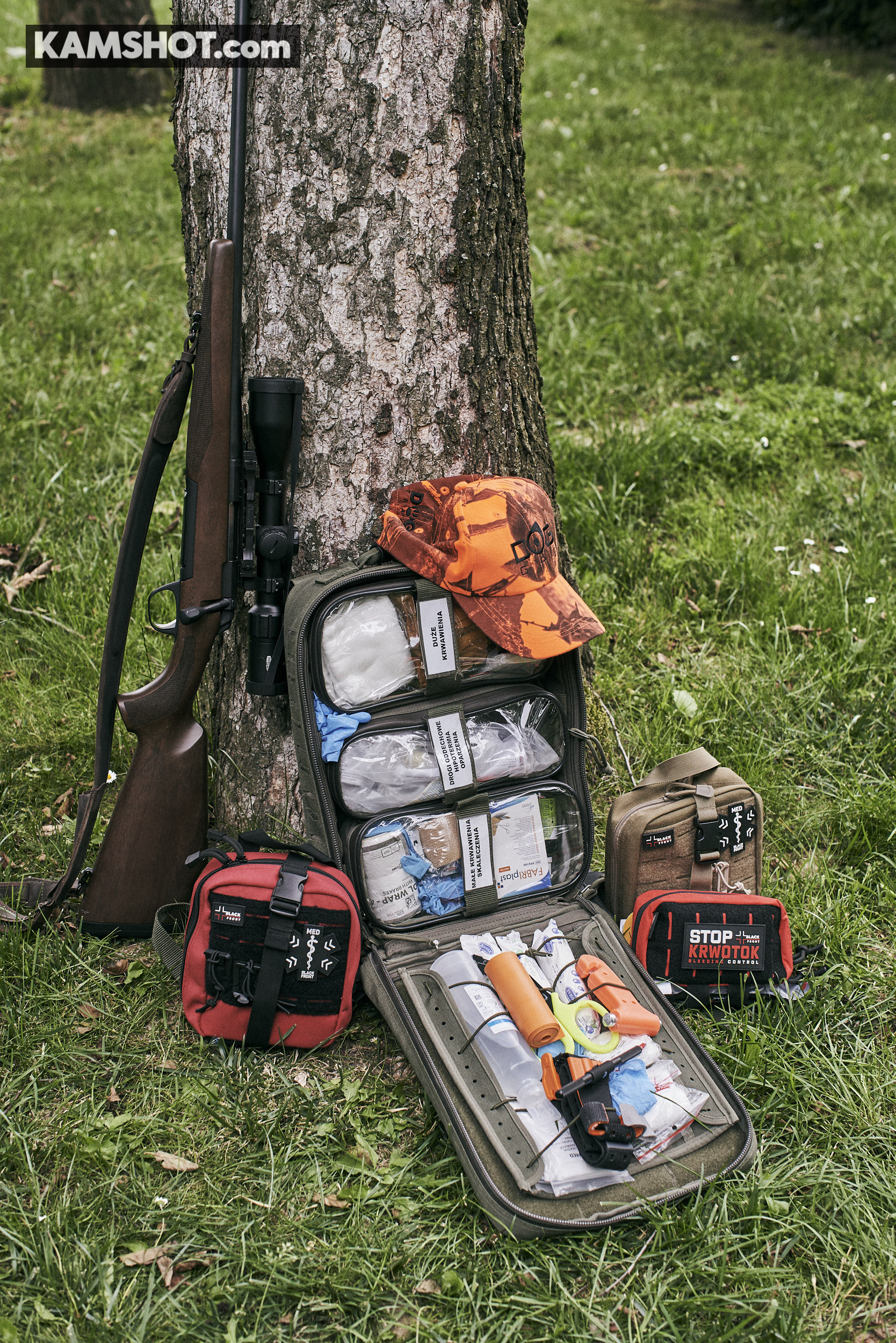 Długo by szukać tak dobrze wyposażonego plecaka medycznego przeznaczonego dla myśliwych i ich psów. Znajduje się w nim większość niezbędnych produktów przeznaczonych do opatrywania wszelkiego rodzaju ran, które mogą przytrafić się na polowaniu. Wyposażony jest w produkty medyczne przeznaczone zarówno dla ludzi jak i psów. Produkty podzielone są na rodzaje ran i umieszczone w opisanych i wyjmowanych kieszeniach.