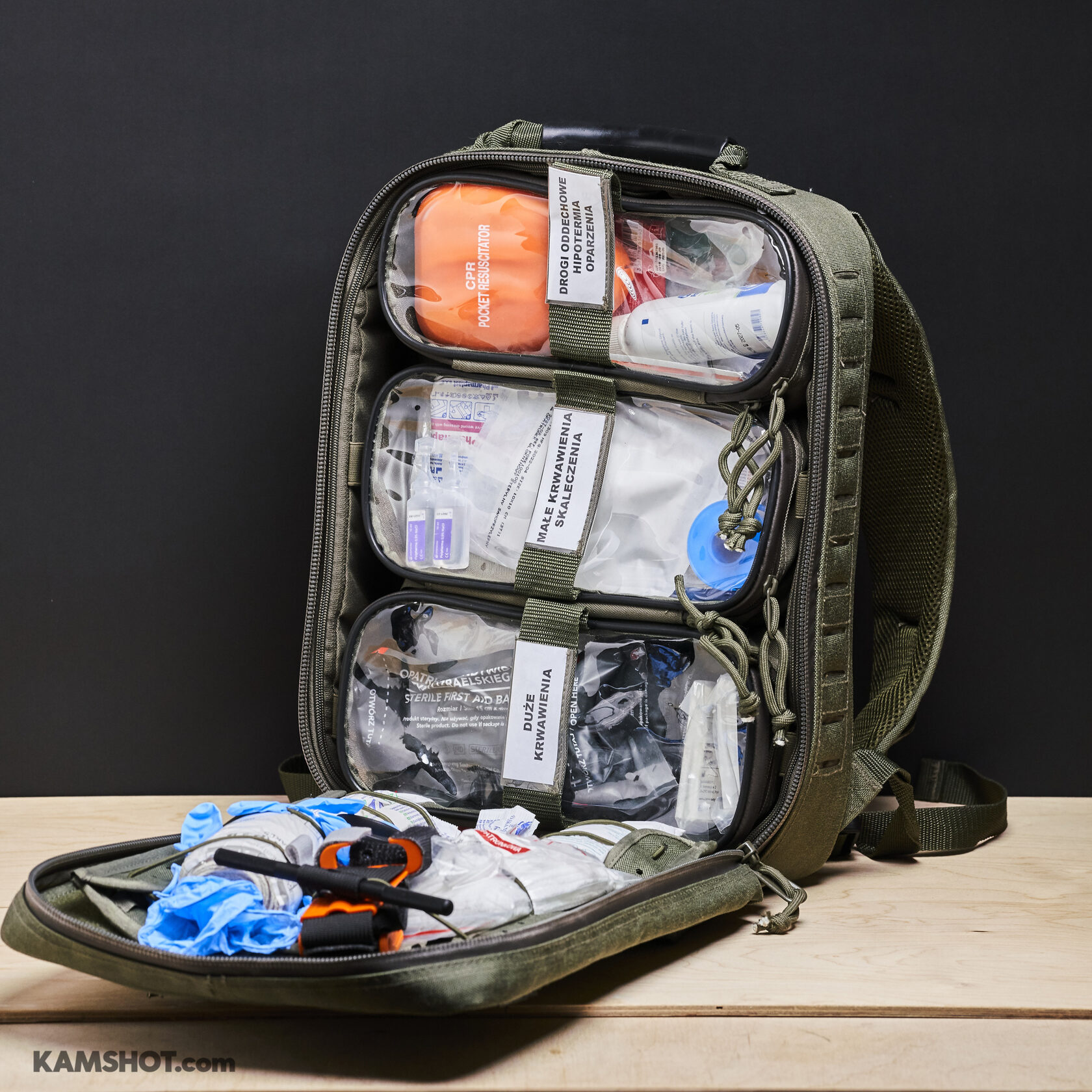 Plecak medyczny rozmiar M Mały plecak militarny SBTR (Small Backpack Trauma Responder) to produkt zaprojektowany z myślą o ratownikach pola walki oraz osobach, które potrzebują kompaktowej konstrukcji. Plecak cechuje połączenie prostoty z przemyślanymi rozwiązaniami konstrukcyjnymi, dzięki którym mamy dostęp do całego wyposażenia medycznego w szybki i intuicyjny sposób. Warto podkreślić, że plecak ma charakter modułowy oraz posiada możliwość łatwej rozbudowy.